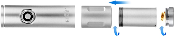 Η σωστή τοποθέτηση πολικότητας μπαταρίας ειναι η εξής: θετικός πόλος προς τα πάνω πρός ατμοποιητή και αρνητικός προς καπάκι σώματος- εισόδου μπαταρίας.