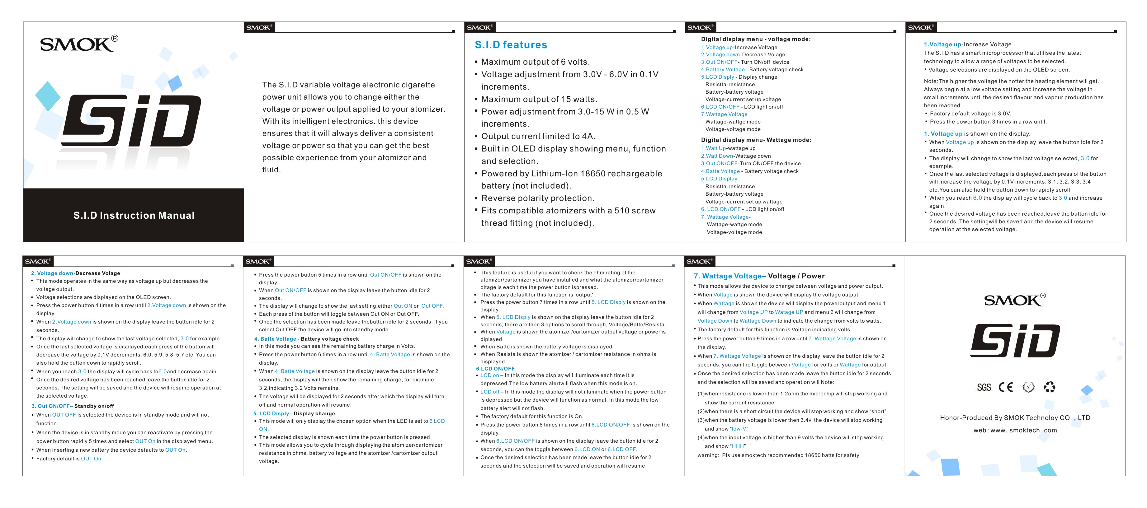 Νέο SmokTech SID mod μεταβλητής τάσης και ισχύς. Είναι η τελευταία επαναστατική έκδοση της εταιρείας από την σειρά των VV / VW mods. Με τη δυνατότητα να ρυθμίσετε από 3V έως 6V με 0.1 προσαύξηση ή από 3 έως 15 watts με 0.5 προσαύξηση.
